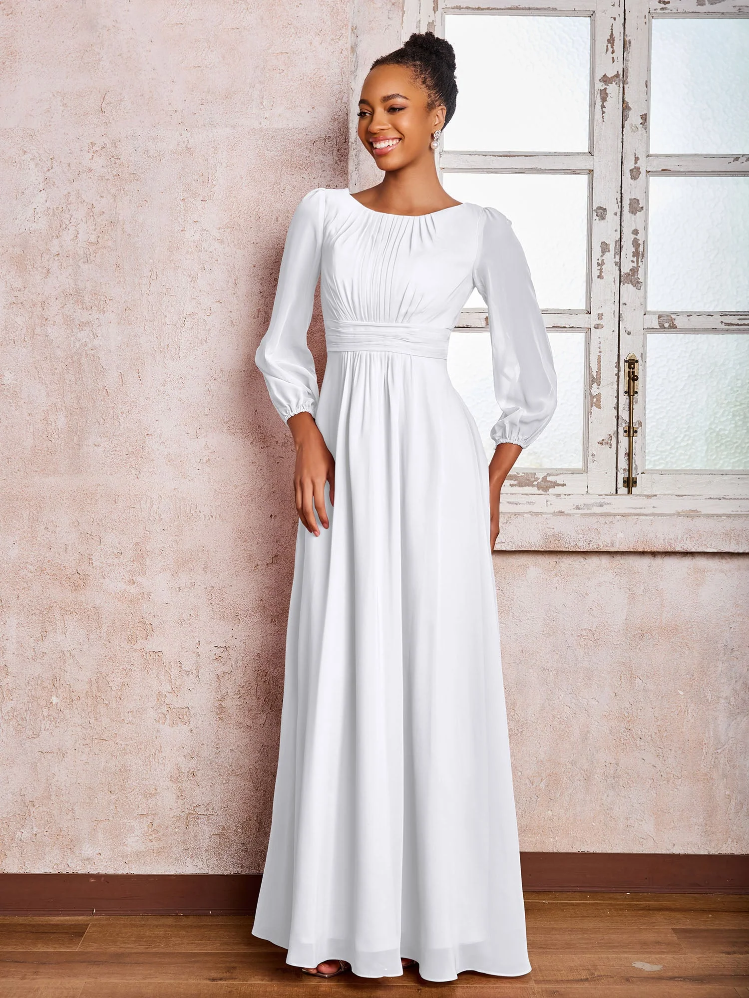 - BABARONI Dolley allie sophistication classique et charme moderne. Le col bateau encadre joliment le visage, et les manches longues ajoutent de la couverture. Le corsage froncé flatte la silhouette et la jupe fluide en mousseline assure un mouvement gracieux, ce qui la rend parfaite pour les événements en soirée.