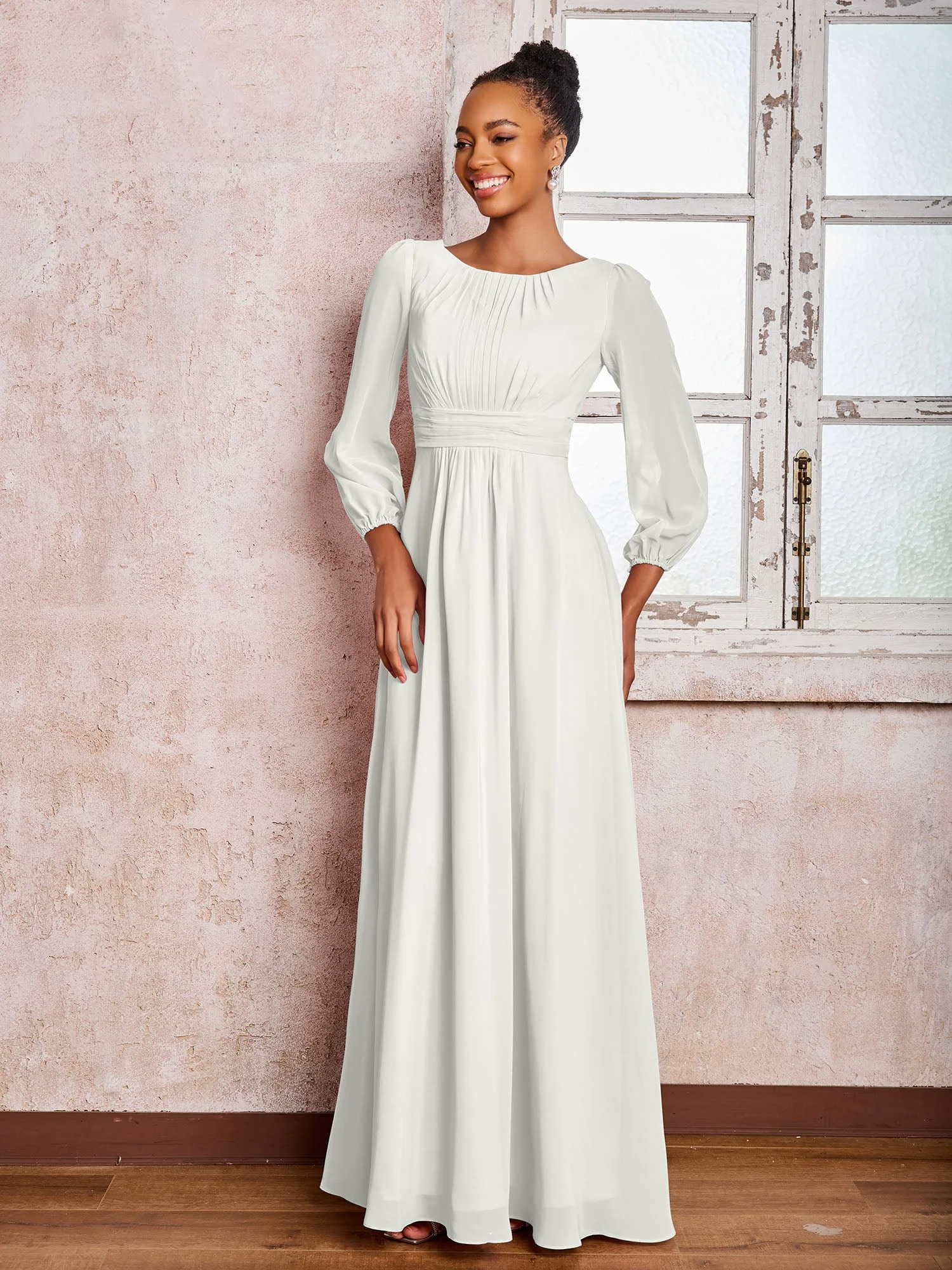 - BABARONI Dolley allie sophistication classique et charme moderne. Le col bateau encadre joliment le visage, et les manches longues ajoutent de la couverture. Le corsage froncé flatte la silhouette et la jupe fluide en mousseline assure un mouvement gracieux, ce qui la rend parfaite pour les événements en soirée.